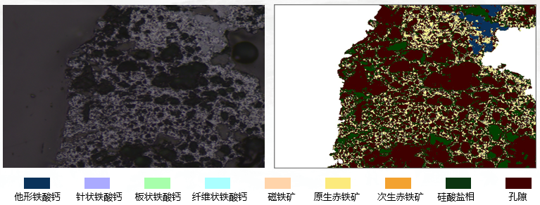 1)主要性能指标:识别精度:可达到对烧结矿典型矿相(磁铁矿、赤铁矿、铁酸钙、硅酸盐相、孔隙等)的亚像素级识别。分析速度:20h可完成9个样品测试。2)适用条件范围:适用于各种铁原料烧结矿的矿相分析。